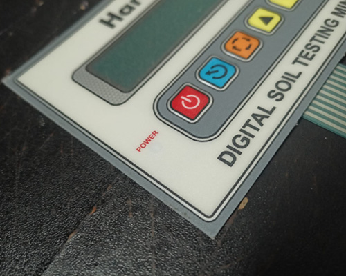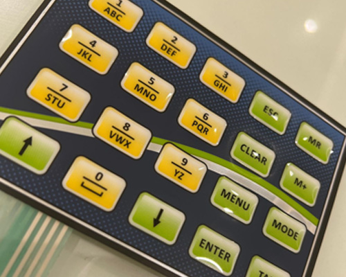 The top layer of the keypad (graphic overlay) can be made using polycarbonate or polyester. Both materials are excellent choices for graphic overlay. The choice of material entirely depends on the respective requirements of the client. Additional finishes like matte, gloss or textured can be provided likewise