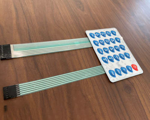Clients can choose from silver ink printed circuits, flexible copper circuits (FPC), or rigid PCBs, depending on their application. Silver ink circuits are economical and widely used. FPC and PCBs are ideal for more complex or high-density keypads that include components like resistors